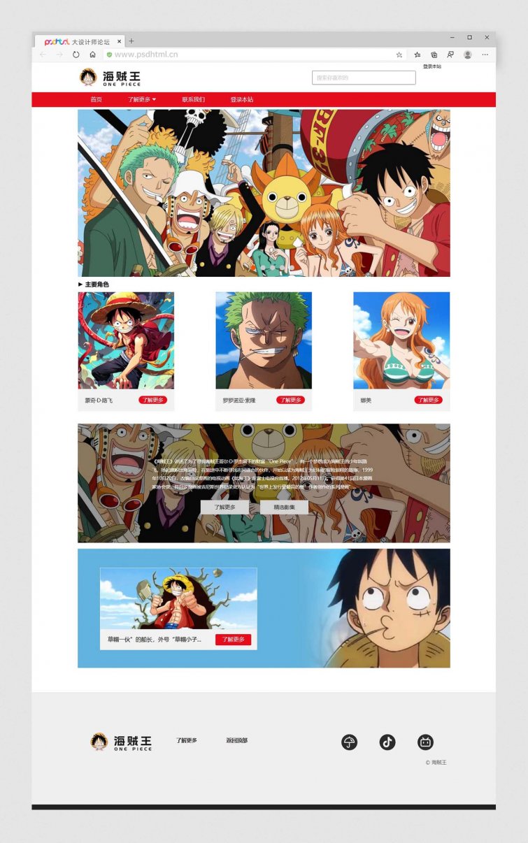 【Html5 div+css】海贼王主题 新版布局 网页设计dw作品-PsdHtml.CN大设计师论坛-网页作业代做|免费下载 Html CSS网页设计成品下载